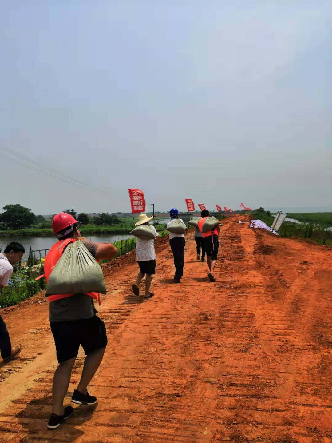 從7月中旬開始,我公司黃蓋湖項(xiàng)目部積極響應(yīng)臨湘市防汛抗旱指揮部號(hào)召,組織項(xiàng)目管理人員6人、工人40名、挖機(jī)3臺(tái)、自卸汽車5輛進(jìn)駐元潭鄉(xiāng)高橋垸堤,同中共臨湘市醫(yī)療保障局第一臨時(shí)黨支部共同抗洪已達(dá)十余天。