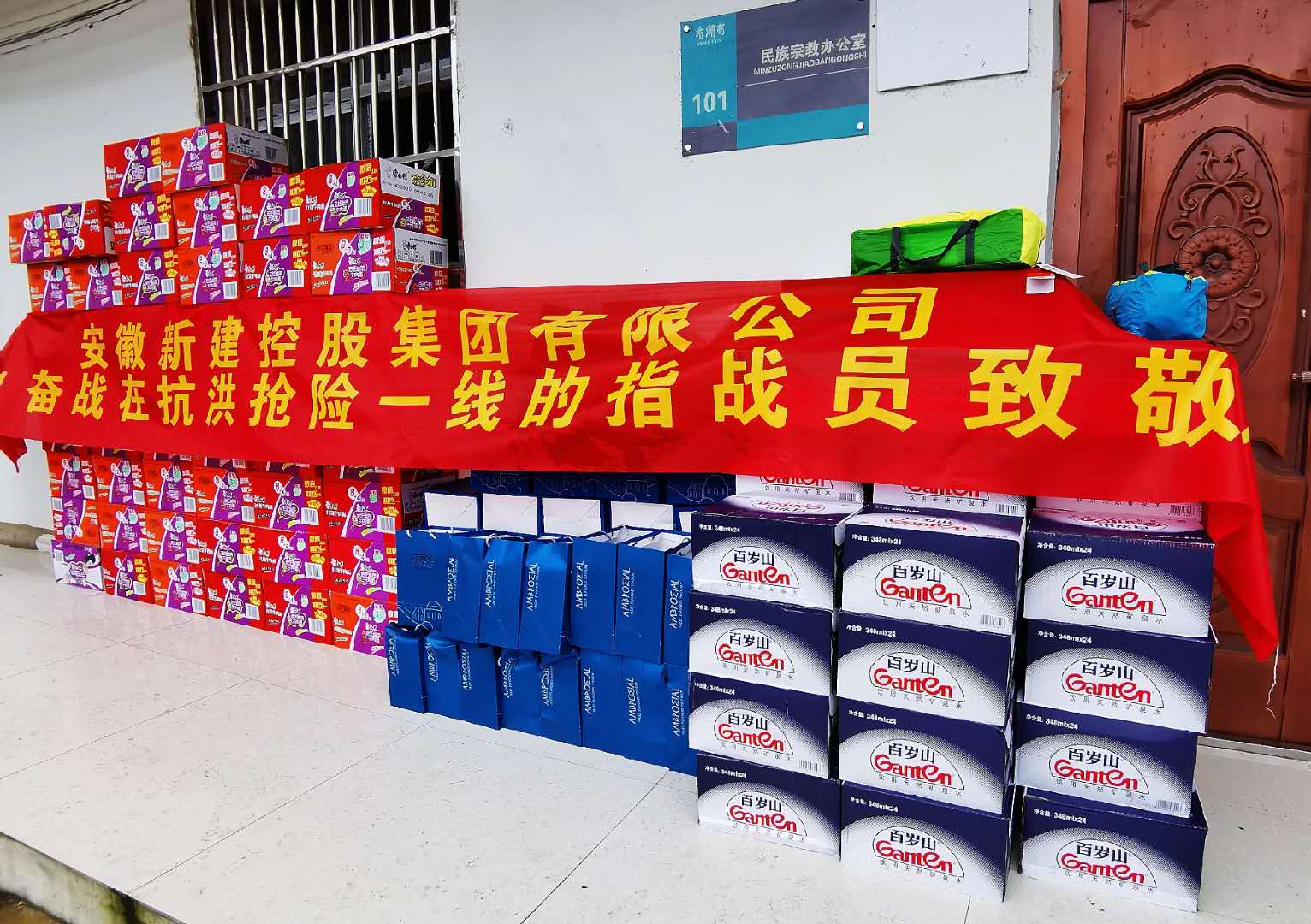 當日,由安徽新建控股集團總經(jīng)理助理胡向華帶隊,我公司霍邱項目部各科室、工區(qū)代表一行10余人,到宋店鄉(xiāng)看湖墩村,為宋店鄉(xiāng)在該村承擔防洪搶險值守任務的一線人員,送去方便面50箱、礦泉水50箱、牛奶50箱,同時,以該項目部為主力成立的我公司防洪搶險第二突擊隊時刻保持待命狀態(tài),隨時準備接受當?shù)卣才诺膿岆U任務,為確保人民群眾生命安全積極投入到抗洪搶險的戰(zhàn)役當中。