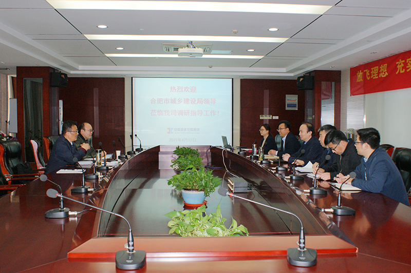 2021年4月12日下午,合肥市城鄉(xiāng)建設(shè)局調(diào)研員王磊,在市政公用管理處有關(guān)領(lǐng)導(dǎo)的陪同下走訪集團公司調(diào)研指導(dǎo)工作。集團總經(jīng)理王鵬程攜相關(guān)部門負責人進行了熱情接待并參加座談。