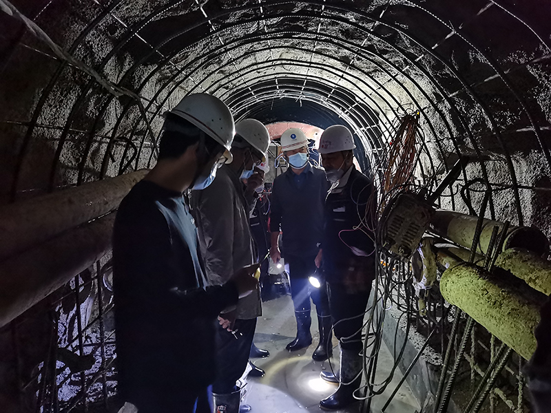 5號隧洞地質(zhì)條件復(fù)雜多變,巖芯較破碎,多呈碎塊狀,風化帶中地下水較為豐富,多呈線狀、股狀。并且圍巖極不穩(wěn)定,開挖時有塌方、涌水現(xiàn)象。在施工過程中,面對這些困難,項目部全體員工毫不畏懼,嚴格遵循"短進尺、弱擾動、快循環(huán)、快支護、強支護、勤觀察、勤排水",一次支護緊跟掌子面,及早封閉開挖巖面的原則,合理安排工序,精心組織施工,優(yōu)化開挖方法,積極采取有效的管控措施,克服了施工中的一個個難題,順利完成了隧洞精準貫通的硬任務(wù),最終實現(xiàn)整條隧道快速、高效、質(zhì)量安全“零事故"目標。