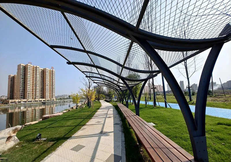 通過(guò)親水棧道、觀景亭、水生植物等營(yíng)造豐富的空間,