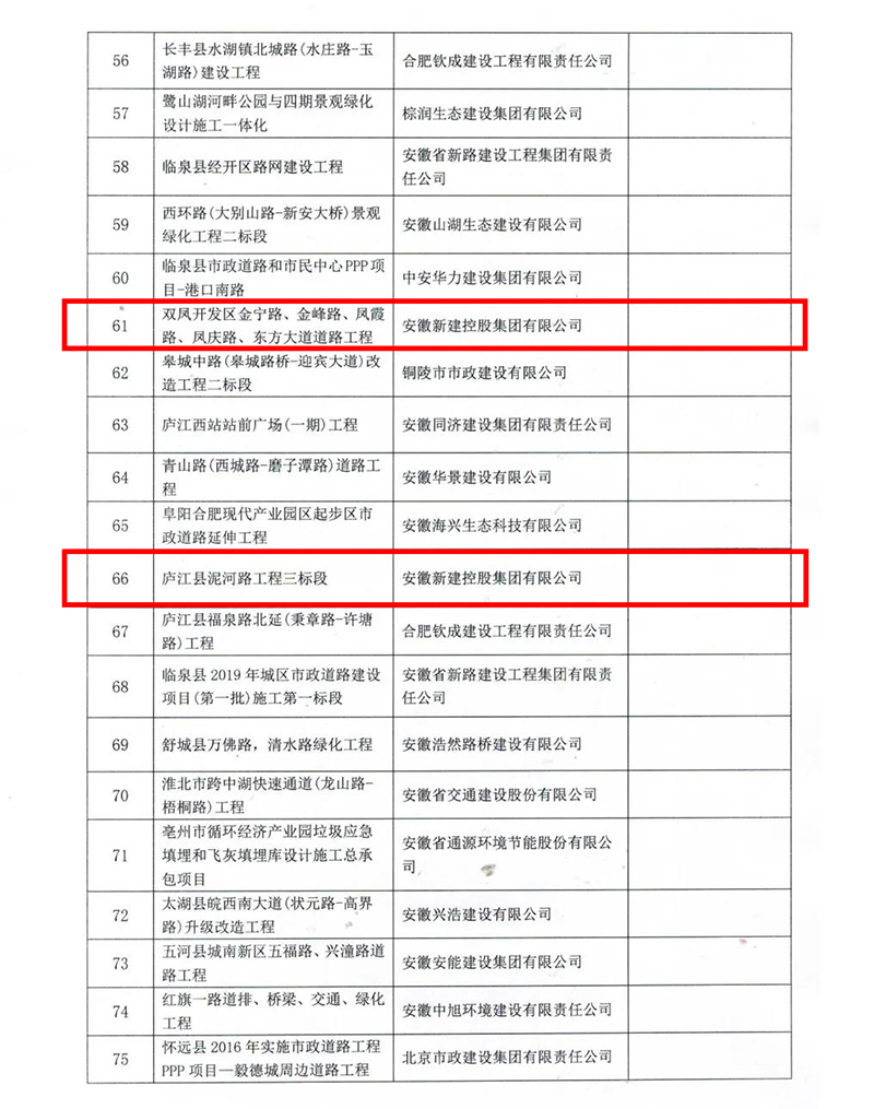 2022年1月17日,安徽省市政工程協(xié)會公布了2021年度安徽省市政工程優(yōu)質獎評選結果的通知,經(jīng)形式審查、現(xiàn)場復核、協(xié)會專家評審委員會審定,并公示無異議,安徽新建控股集團有限公司承建的四項工程榮獲“2020年度安徽省市政工程優(yōu)質獎”!