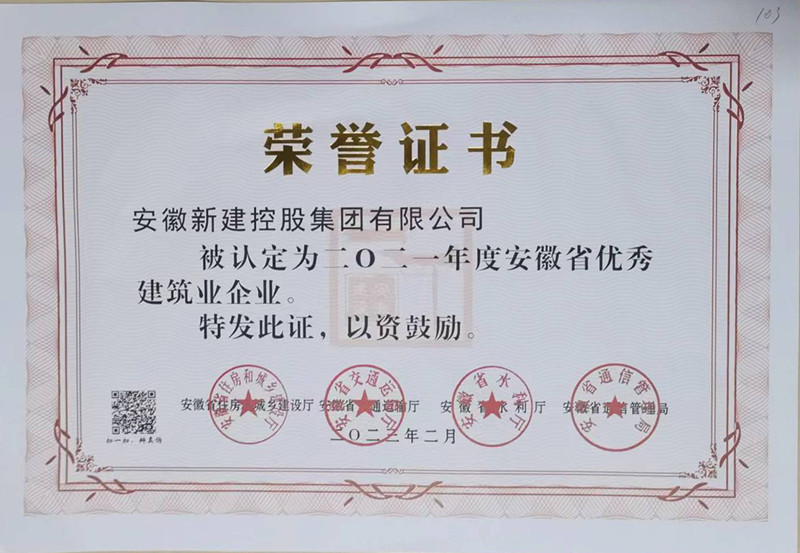 近日,安徽省住房和城鄉(xiāng)建設(shè)廳頒發(fā)了“2021年度安徽省優(yōu)秀建筑業(yè)企業(yè)”獎(jiǎng)牌及證書(shū),安徽新建控股集團(tuán)有限公司榮列榜單。