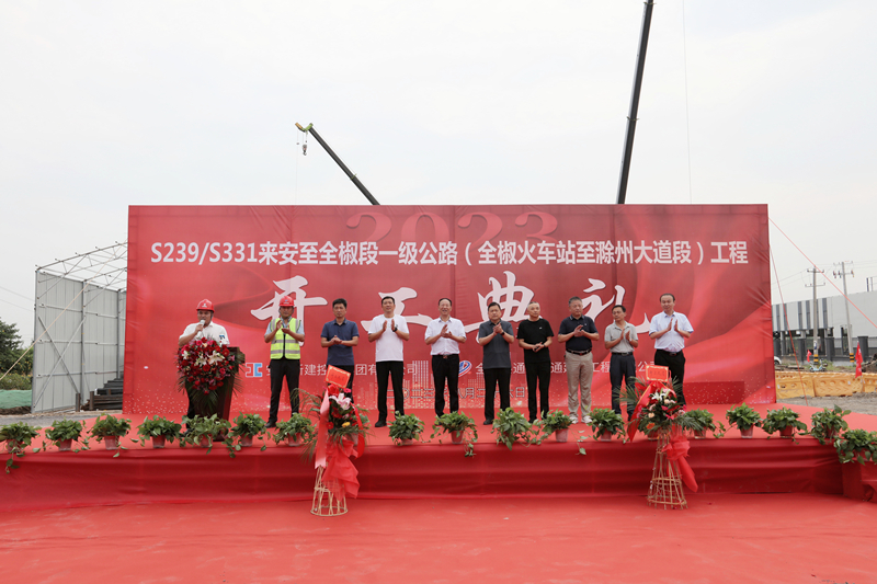 2023年8月26日,由安徽新建牽頭組成聯(lián)合體承建的S239、S331來安至全椒段一級(jí)公路(全椒火車站至滁州大道段)工程開工典禮隆重舉行?;顒?dòng)現(xiàn)場(chǎng)彩旗飄揚(yáng)、花團(tuán)錦簇,出席開工典禮的有全椒縣縣委常委副縣長(zhǎng)張勇、縣交通局局長(zhǎng)張斌、縣住建局局長(zhǎng)張勝榮、縣城管局局長(zhǎng)劉思德、襄河鎮(zhèn)鎮(zhèn)長(zhǎng)王玉飛、縣交通局副局長(zhǎng)王榮民、集團(tuán)公司董事長(zhǎng)王杰英及總經(jīng)理王鵬程、全椒通達(dá)公司總經(jīng)理?xiàng)钔ド健⒏鲄⒔▎挝淮淼取?/p>