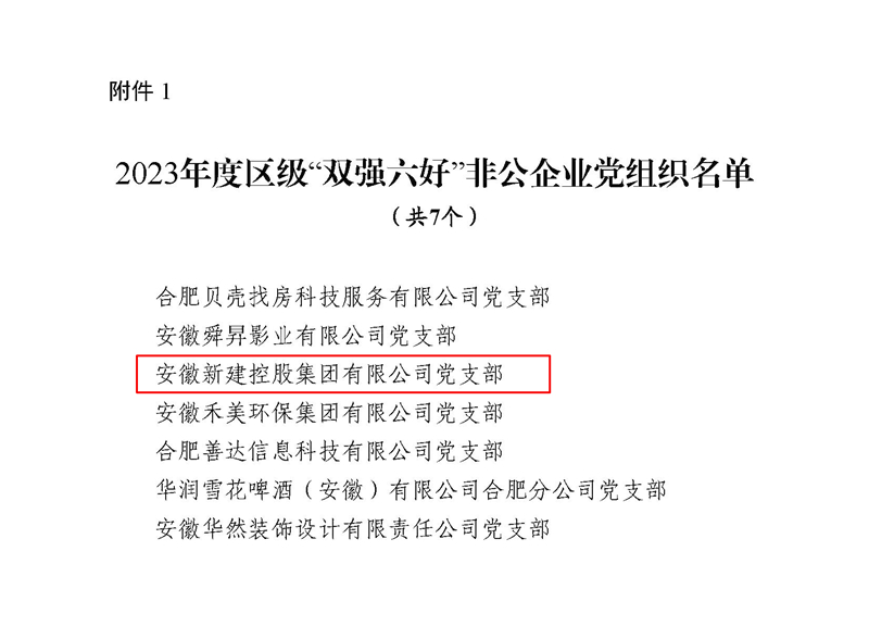 1月22日,中共合肥市蜀山區(qū)委組織部、中共合肥市蜀山區(qū)委非公工委聯(lián)合發(fā)文,命名2023年度區(qū)級“雙強六好”非公企業(yè)黨組織、“雙比雙爭”先進社會組織黨組織和全區(qū)非公企業(yè)和社會組織黨建工作示范點,集團公司黨支部作為先進典型,以及在非公黨建工作中發(fā)揮的示范引領(lǐng)作用,被授予2023年度蜀山區(qū)“雙強六好”非公企業(yè)黨組織榮譽稱號。