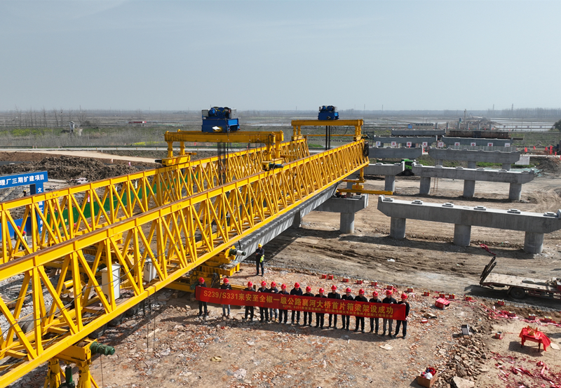 3月20日,伴隨著架橋機的轟鳴聲,集團公司聯(lián)合承建的S239、S331來安至全椒段一級公路(全椒火車站至滁州大道段)工程首片預制箱梁精準架設在襄河大橋0號橋臺至1號橋墩之間,標志著項目建設從下部結構施工正式轉入橋梁上部結構施工階段。