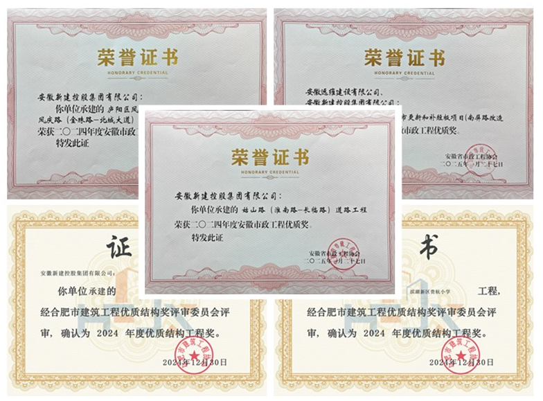 新年伊始,集團公司承建的多個項目斬獲殊榮。安徽省市政工程協(xié)會公布的2024年度安徽市政工程優(yōu)質(zhì)獎項目名單,公司承建的三個項目獲得獎項,分別是:姑山路(淮南路-長臨路)道路工程、廬陽區(qū)鳳祥路(金翠路-北城大道)鳳慶路(金珠路-北城大道)兩條道路工程施工(廬陽段)、全椒縣城市更新和補短板項目(南屏路改造工程)。