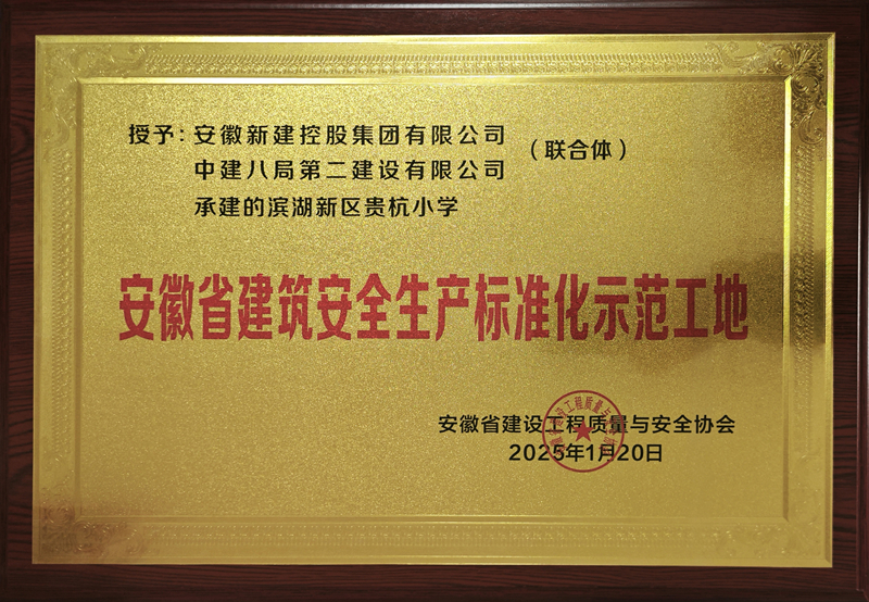 近日,安徽省建設(shè)工程質(zhì)量與安全協(xié)會頒發(fā)2024年度安徽省建筑安全生產(chǎn)標(biāo)準(zhǔn)化示范工地牌匾證書,集團公司聯(lián)合承建的濱湖新區(qū)貴杭小學(xué)、安徽甲天科技有限公司技術(shù)研發(fā)中心、包河區(qū)BH202214地塊項目三項工程喜獲殊榮。