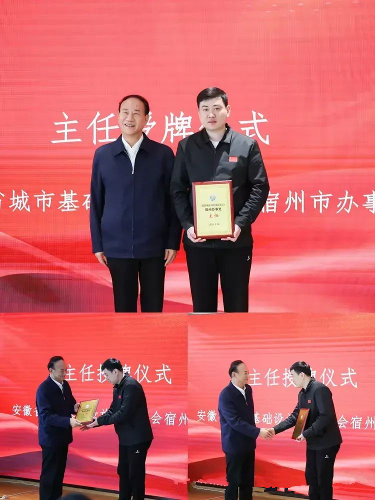 安徽省城市基礎設施投資商會會長、安徽新建控股集團有限公司董事長王杰英向新任宿州市辦事處主任臧宇授牌。