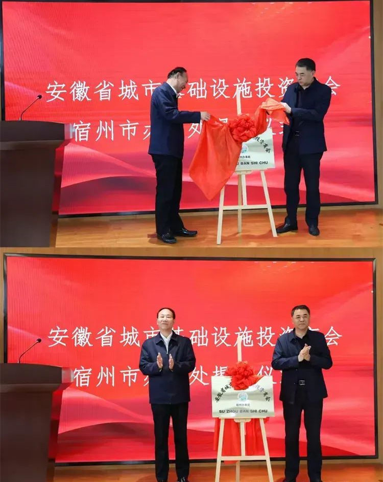 安徽省工商聯(lián)宣教處副處長(主持工作)張鳳翔與安徽省城市基礎設施投資商會會長、安徽新建控股集團有限公司董事長王杰英共同為宿州市辦事處揭牌,現(xiàn)場掌聲雷動,這一時刻宣告辦事處全面投入運營。
