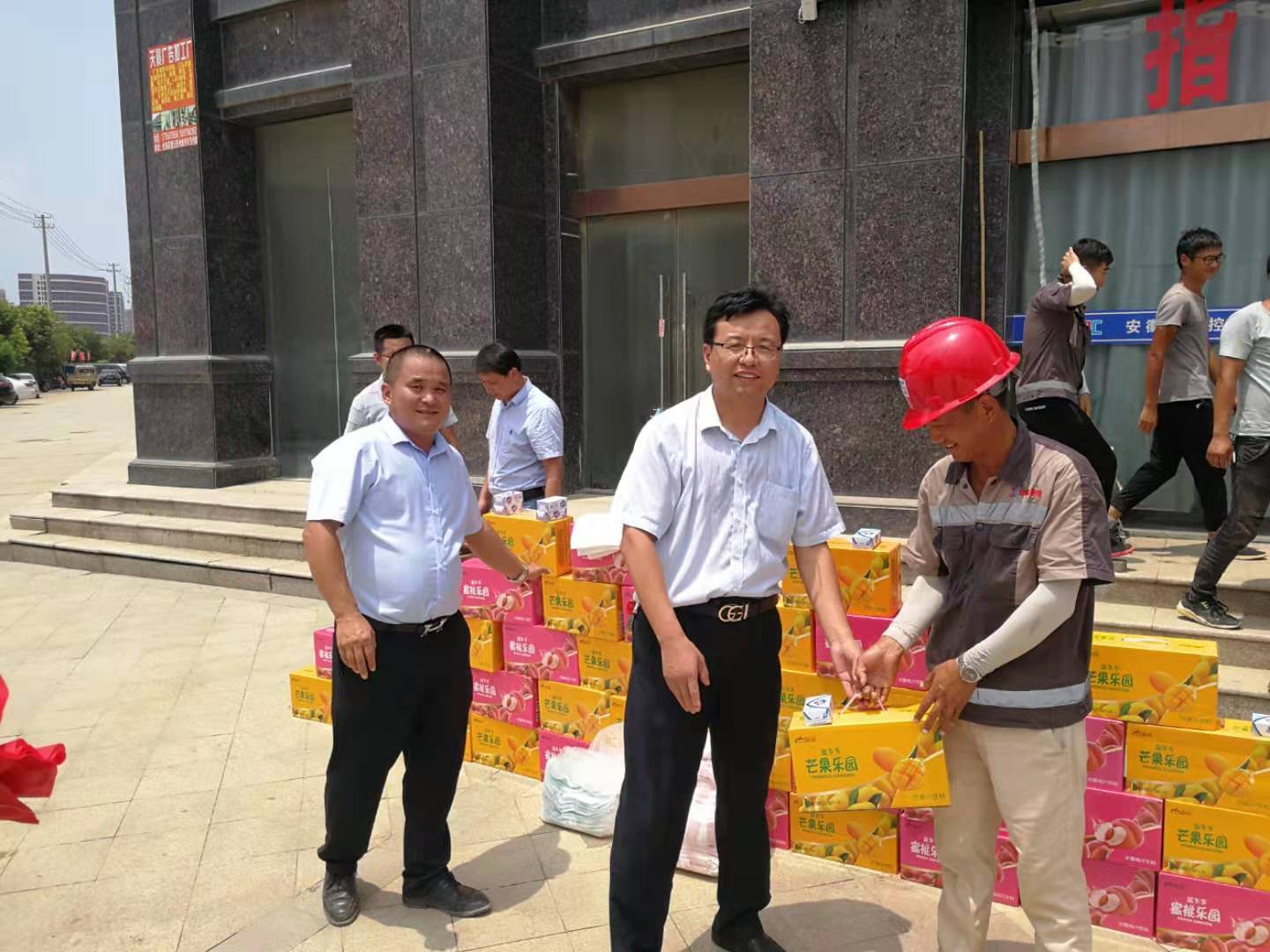 為切實做好夏季防暑降溫工作,確保一線員工的身體健康和安全生產(chǎn),2019年7月24日,安徽新建控股集團(tuán)有限公司行政總監(jiān)賀軍、財務(wù)總監(jiān)葉炳宏、總工程師李小寶、人力資源部經(jīng)理廖龍華一行,到全椒縣各項目部組織開展“情系一線、夏送清涼”慰問活動,為項目工地的一線員工送去防暑降溫物品。