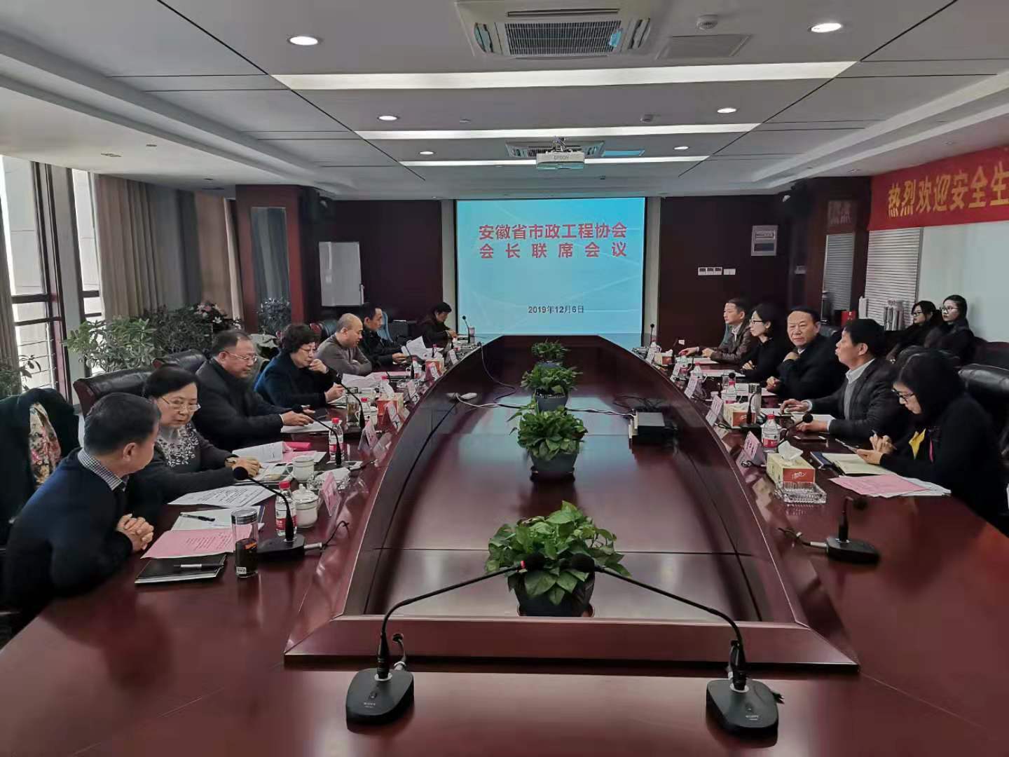 2019年12月6日,安徽省市政工程協(xié)會會長聯(lián)席會議在我公司召開,中國市政工程協(xié)會副會長劉梅生、安徽省市政工程協(xié)會會長王斌、副會長戴立群、秘書長尹新,以及協(xié)會部分單位的有關(guān)領(lǐng)導(dǎo)出席了會議。